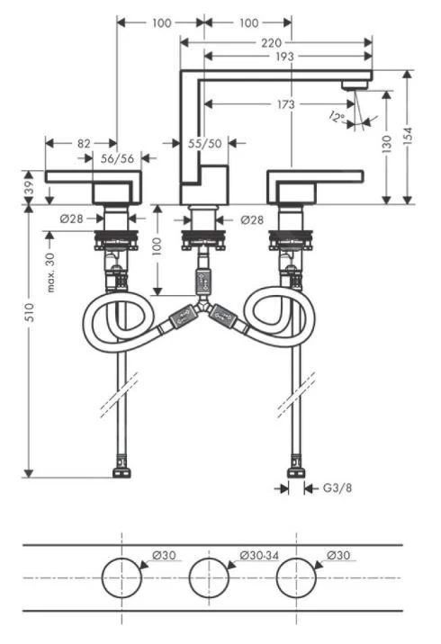 Eéngreeps wastafelkraan, 3-gats, met afvoergarnituur Push-Open