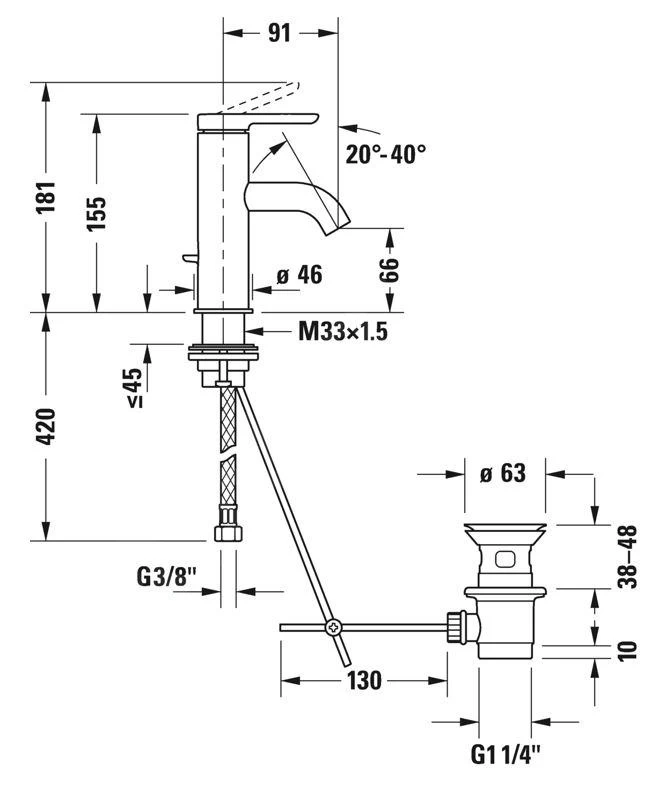 - lengte uitloop 91 mm
