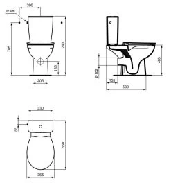 Exclusief spoelreservoir en toiletzitting.