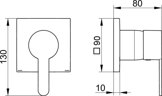 - vierkante wandrozet: afmeting 90 x 90 mm